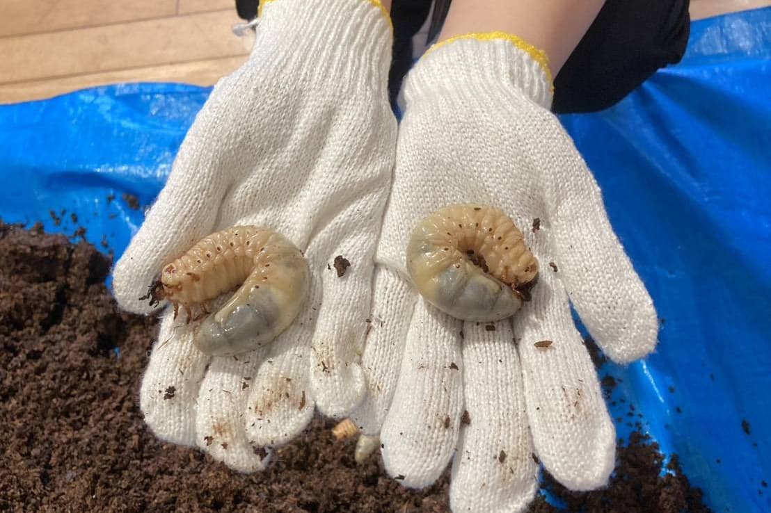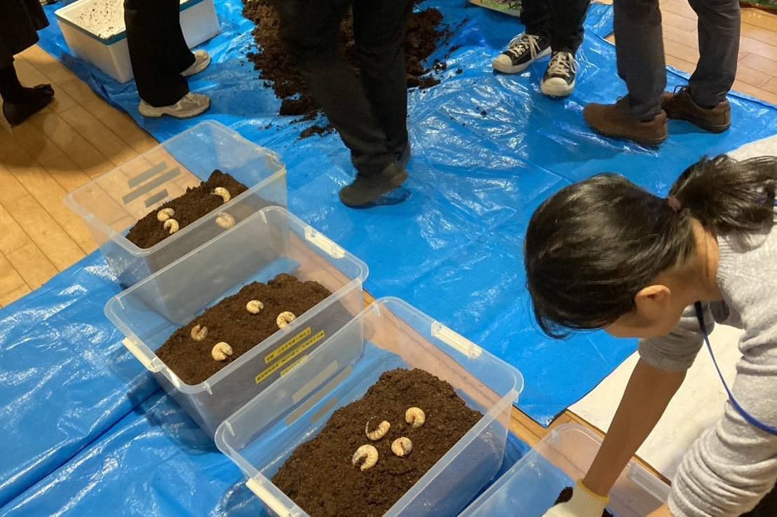 阿南市のカブトムシの幼虫を子どもたちへ